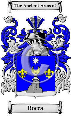 Italy Spain Etymology of RoccaWhat does the name Rocca mean? The noble surname Rocca is of Spanish descent, and is of locative origin, deriving from a topographic characteristic near the place where the original bearer lived or owned land. The name Rocca is derived from the Catalan word "roca" meaning "rock" or "tower of strength." Early Origins of the Rocca familyThe surname Rocca was first found in the region of Catalonia, an area allied with the powerful kingdom of Aragon during the Middle Ages. Early History of the Rocca familyThis web page shows only a small excerpt of our Rocca research. Another 122 words (9 lines of text) covering the years 1358, 1360 and 1401 are included under the topic Early Rocca History in all our PDF Extended History products and printed products wherever possible. Rocca Spelling VariationsSpelling variations of this family name include: Roco, Rocas, Rocca, Rocha and others. Early Notables of the Rocca family- Arrigo Della Rocca (Arrigu), (1358-1401), nobleman who dominated the political life of Corsica during the second half of the 14th century