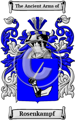 Germany Etymology of RosenkampfWhat does the name Rosenkampf mean? A multitude of prestigious family names, such as the surname Rosenkampf, were formed in the lands which became the modern German state of Prussia, which is known for its beauty, industry and military power. However, in the medieval era, Prussia was fragmented and inhabited by numerous barbarian tribes, who fought amongst themselves for control of the land. The borders of the barbarian kingdoms, which were established after the fall of the Roman Empire, changed repeatedly. The region that came to be known as Prussia was roughly divided between the territories of Brandenburg-Prussia, West Prussia and East Prussia.By the 19th century, Brandenburg-Prussia had incorporated East Prussia, West Prussia and many other German territories. Moreover, in the late 19th century, it led the German states in the German Unification. Early Origins of the Rosenkampf familyThe surname Rosenkampf was first found in northern Germany, where the name came from humble beginnings but gained a significant reputation for its contribution to the emerging mediaeval society. It later became more prominent as many branches of the same house acquired distant estates and branches, some in foreign countries, always elevating their social status by their great contributions to society. Early History of the Rosenkampf familyThis web page shows only a small excerpt of our Rosenkampf research. Another 149 words (11 lines of text) covering the years 1647, 1687, 1690, 1728, 1741, 1758, 1790 and 1817 are included under the topic Early Rosenkampf History in all our PDF Extended History products and printed products wherever possible. Rosenkampf Spelling VariationsMany cultural groups lived in the German states in medieval times. Each had its own dialect and traditions, and unique variations of popular names. Low German, which is similar to contemporary Dutch, was spoken in Westphalia. German names are characterized by additions such as regional suffixes and phrases that tell something about the origin or background of its original bearer. Further contributing to the variation in German names was the fact that there were no spelling rules in medieval times: scribes recorded names according to their sound. The recorded spelling variations of Rosenkampf include Rosenkampf, Rosenkamp, Rosenkampff, Roskampff, Rosskampf, Roskampf, Rossenkampf, Rossenkamp, Rossenkampff, Rosekampf, Rosekamp, Rosekampff, Rozenkampf, Rozenkamp and many more. Early Notables of the Rosenkampf familyMore information is included under the topic Early Rosenkampf Notables in all our PDF Extended History products and printed products wherever possible. Migration of the Rosenkampf familyThe state of Prussia was a great influence on the shape of modern Germany. After the Second World War, Prussia's land was divided among the Soviet Union, Poland, East Germany and West Germany and the state was abolished. Some Prussians remained in those countries after the war, while many others migrated to North America in search of a new start. Philadelphia was their primary point of entry to the United States, after which many of them moved on to Ohio, Texas, Illinois, California, New York, and Maryland. A large number of Prussians also migrated to Ontario and the prairie provinces as United Empire Loyalists. Analysis of immigration records has shown some of the first Rosenkampfs to arrive in North America, and among them were: various members of this family who immigrated to the American eastern seaboard in the 18th and 19th century. Their specific migration is not detailed in the records..