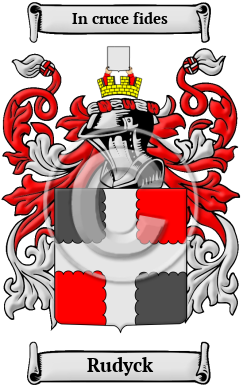 England Etymology of RudyckWhat does the name Rudyck mean? The name Rudyck first arose amongst the Anglo-Saxon tribes of Britain. It is derived from their having lived near a ridge. Also, some examples of the name are of nickname derivation. This makes Rudyck a classic example of an English polygenetic surname, which is a surname that was developed in a number of different locations and adopted by various families independently. The local variant of the surname is derived from the Old English word hrycg, which means ridge. In Old English, thish word became rugge, regge, and rigge in various dialects of the language. The surname Rudyck is derived from the rugge variant of the word. The nickname variant is derived from the Anglo French word rugge (rouge in Modern French) which means red, and would have been the nickname of someone with brilliant red hair. Early Origins of the Rudyck familyThe surname Rudyck was first found in Shropshire at Rudge, a township, in the parish of Pattingham. "The surname is doubtless derived from a township in Shropshire so called. " 1 The place name was listed in the Domesday Book of 1086 as Rigge 2 and was derived from the Old English word "hrycg" which means "place at the ridge." 3 There are few other places named Rudge in Britain, specifically in the counties Devon, Wiltshire and Somerset and all are very small locals and have remained small through the centuries. An early member of the family was John de Rugge, of Seysdon, Staffordshire who was living, 17 Edward II. Early History of the Rudyck familyThis web page shows only a small excerpt of our Rudyck research. Another 97 words (7 lines of text) covering the years 1320 and 1637 are included under the topic Early Rudyck History in all our PDF Extended History products and printed products wherever possible. Rudyck Spelling VariationsOne relatively recent invention that did much to standardize English spelling was the printing press. However, before its invention even the most literate people recorded their names according to sound rather than spelling. The spelling variations under which the name Rudyck has appeared include Rudge, Ruidge, Roidge, Rutdge, Rutge, Rudych, Rutch, Rutche, Ruitge and many more. Early Notables of the Rudyck familyMore information is included under the topic Early Rudyck Notables in all our PDF Extended History products and printed products wherever possible. Migration of the Rudyck familyAt this time, the shores of the New World beckoned many English families that felt that the social climate in England was oppressive and lacked opportunity for change. Thousands left England at great expense in ships that were overcrowded and full of disease. A great portion of these settlers never survived the journey and even a greater number arrived sick, starving, and without a penny. The survivors, however, were often greeted with greater opportunity than they could have experienced back home. These English settlers made significant contributions to those colonies that would eventually become the United States and Canada. An examination of early immigration records and passenger ship lists revealed that people bearing the name Rudyck arrived in North America very early: Joe Rudge, who settled in Barbados in 1635; Thomas Rudge, who settled in New York in 1679; as well as George and John Rudge, who arrived in Philadelphia in 1820..