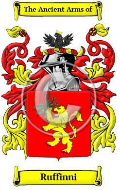 | Ruffinni History, Family Crest & Coats of Arms Etymology of RuffinniWhat does the name Ruffinni mean? The surname Ruffinni has at least two possible origins: First, the name Ruffinni could have come from the Italian pet name Ruffo, with various suffixes added, such as "-ino," or "-ini." A possible origin of Ruffo is the Germanic name Hrodwulf, meaning "victorious wolf," which was Italianized after one of many barbarian invasions. Second, the name Ruffinni could have been derived from the Latin "rufus," meaning "red." If this is the case, the name probably originated as a nickname, perhaps for someone with red hair or a ruddy complexion. Early Origins of the Ruffinni familyThe surname Ruffinni was first found in southern Italy, particularly on the island of Sicily. The surname Ruffinni has at least two possible origins: First, the name Ruffinni could have come from the Italian pet name Ruffo, with various suffixes added, such as "-ino," or "-ini." A possible origin of Ruffo is the Germanic name Hrodwulf, meaning "victorious wolf," which was Italianized after one of many barbarian invasions. Second, the name Ruffinni could have been derived from the Latin "rufus," meaning "red." If this is the case, the name probably originated as a nickname, perhaps for someone with red hair or a ruddy complexion. Early History of the Ruffinni familyThis web page shows only a small excerpt of our Ruffinni research. The years 1421, 1765, 1807, 1822 and 1881 are included under the topic Early Ruffinni History in all our PDF Extended History products and printed products wherever possible. Ruffinni Spelling VariationsSpelling variations of this family name include: Ruffino, Ruffini, Ruffo, Ruffi and others. Early Notables of the Ruffinni familyRuggero Ruffino, who was senator of the city of Siracusa and counselor of the Baron of Capopassero. Also worth noting are Antonio Ruffino di Siracusa, who was a jurist in 1421... Another 30 words (2 lines of text) are included under the topic Early Ruffinni Notables in all our PDF Extended History products and printed products wherever possible. Migration of the Ruffinni familySome of the first settlers of this family name or some of its variants were: Gaspian Ruffi, are 23, who came to New Orleans, Louisiana in 1823; Antonino Ruffino, who came to New York city in 1891, aboard the "Palcevera".