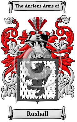 The surname Rushall was first found in Staffordshire where they held a family seat as Lords of the Manor. The Saxon influence of English history diminished after the Battle of Hastings in 1066. The language of the courts was French for the next three centuries and the Norman ambience prevailed. But Saxon surnames survived and the family name was first referenced in the 13th century when they held estates in that shire.