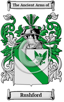 England Early Origins of the Rushford familyThe surname Rushford was first found in Norfolk where they held a family seat as Lords of the Manor. After the Battle of Hastings in 1066, William, Duke of Normandy, having prevailed over King Harold, granted most of Britain to his many victorious Barons. It was not uncommon to find a Baron, or a Bishop, with 60 or more Lordships scattered throughout the country. These he gave to his sons, nephews and other junior lines of his family and they became known as under-tenants. They adopted the Norman system of surnames which identified the under-tenant with his holdings so as to distinguish him from the senior stem of the family. After many rebellious wars between his Barons, Duke William, commissioned a census of all England to determine in 1086, settling once and for all, who held which land. He called the census the Domesday Book, 1 indicating that those holders registered would hold the land until the end of time. Hence, conjecturally, the surname is descended from the tenant of the lands of Rushford, held by John, the nephew of Waleran, Count of Meulan, who was recorded in the Domesday Book census of 1086. Early History of the Rushford familyThis web page shows only a small excerpt of our Rushford research. Another 87 words (6 lines of text) covering the year 1342 is included under the topic Early Rushford History in all our PDF Extended History products and printed products wherever possible. Rushford Spelling VariationsSpelling variations of this family name include: Rushford, Rushforth, Russford, Russforth and others. Early Notables of the Rushford family- the Rushford family of Norfolk