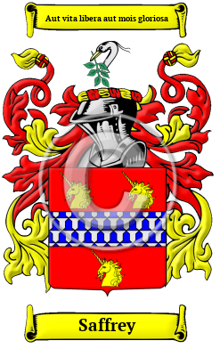 The surname Saffrey was first found in Devon where they held a family seat from very early times and were granted lands by Duke William of Normandy, their liege Lord, for their distinguished assistance at the Battle of Hastings in 1066 A.D.