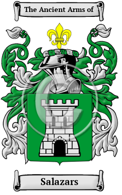 | Salazars History, Family Crest & Coats of Arms Etymology of SalazarsWhat does the name Salazars mean? The surname Salazars is a Basque habitation name from the word "sala," which means "hall," and the Basque word "zahar," which means "old." Salazar is a locality in the municipality of Villarcayo de Merindad de Castilla la Vieja, in the comarca of Las Merindades, in the province of Burgos, in the autonomous community of Castile and León, Spain. Salazarese (locally Zaraitzuko uskara) is the Basque dialect of the Salazar Valley of Navarre, Spain. Early Origins of the Salazars familyThe surname Salazars was first found in Castile, where the family held a family seat from the early Middle Ages. During the 10th century, the surname appears in Navarre, where it extensively spread including into the eponymous Salazar Valley, a valley in the east of the Foral Community of Navarre in Spain. Early Latin records found in the Monastery of Leire, noted the denomination of Sarasazo (924) and later Sarasazu (1055), Sarasaz (1111 and 1469), Sarasaitz (1205.) Early History of the Salazars familyThis web page shows only a small excerpt of our Salazars research. Another 88 words (6 lines of text) covering the years 1190, 1512, 1514, 1526, 1550, 1551, 1564, 1575, 1579, 1594, 1622, 1626, 1636, 1639, 1650, 1664, 1673, 1710 and 1715 are included under the topic Early Salazars History in all our PDF Extended History products and printed products wherever possible. Salazars Spelling VariationsSpelling variations of this family name include: Salazar, Salaz and others. Early Notables of the Salazars familywere Toribio Alonso de Salazar (died 1526), a Spanish navigator of Castilian origin who was the first Westerner to arrive on the Marshall Islands on 21 August 1526; and Alonso de Salazar Frias (c. 1564-1636), known as "The Witches' Advocate" by historians, for his role in overturning convictions within the Spanish Inquisition.