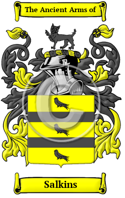 The surname Salkins was first found in Kent where they held a family seat as Lords of the Manor. The Saxon influence of English history diminished after the Battle of Hastings in 1066. The language of the courts was French for the next three centuries and the Norman ambience prevailed. But Saxon surnames survived and the family name was first referenced in the year 13th century when they held estates in that shire.