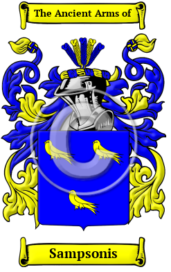 France Etymology of SampsonisWhat does the name Sampsonis mean? The name Sampsonis is from Normandy, France. The root name Sanson or Samson is an Old French name given to "a Welsh bishop (fl. 550) who crossed over to Brittany and founded the abbey of Dol where he was buried and venerated as a saint. Whether his name is the Biblical Samson or one of Celtic origin is uncertain. Probably from Saint-Samson (Seine-Inférieure), or from Saint-Samson (Calvados), Saint-Samson-de-Bonfosse (La Manche) or Saint-Samson-de-la-Roque (Eure)." 1 Another source claims the name to be derived from the Hebrew given name Shemuel, meaning the name of God. Early Origins of the Sampsonis familyThe surname Sampsonis was first found in Normandy (French: Normandie), the former Duchy of Normandy, where this distinguished family held a family seat at Saint-Clair-Sur-Elle in Manche in the arrondissement of St.Lô, where one Ricardi Samsonis, the Latin name for Richard Sampson is described in a charter to Philip the Bishop of Bayeux in 1142, and he is named as occupant of the castle of Saint-Clair. 2 "A well-known monastery near Rouen was built by the Archbishop of Dol, known as St. Sansone or St. Sampson." 3 Early History of the Sampsonis familyThis web page shows only a small excerpt of our Sampsonis research. Another 56 words (4 lines of text) are included under the topic Early Sampsonis History in all our PDF Extended History products and printed products wherever possible. Sampsonis Spelling VariationsOne can encounter great variation in the spelling of French surnames; in part, as spelling, and the spelling names was not yet standardized during the early development of the written French language. Later, there was much branching and movement of families, and spellings would change according to region. Variations of the name Sampsonis include Samson, Samsons, Samsone, Samso, Samsun, Samsoen, Sampsoen, Sampson, Sampsonis and many more. Early Notables of the Sampsonis familyMore information is included under the topic Early Sampsonis Notables in all our PDF Extended History products and printed products wherever possible. Migration of the Sampsonis familyFrench settlers came early to North American, following in the wake of the explorers, and creating New France. Quebec City, founded in 1608 by Samuel de Champlain is said to have been the first American site founded as a permanent settlement, rather than as just a commercial outpost. But emigration was slow, in 1643, 109 years after the first landings by Cartier, there were only about 300 French people in Quebec, and by 1663, when the region was officially made The Royal Colony of New France, by Louis XIV, there still only around 500 settlers. Over 2,000 would arrive during the next decade. Early marriage was desperately encouraged amongst the immigrants. Youths of 18 took fourteen-year-old girls for their wives. The fur trade was developed and attracted immigrants, both noble and commoner from France. By 1675, there were around 7000 French in the colony, and by that same year the Acadian presence in Nova Scotia, New Brunswick and Prince Edward Island had reached 500. In 1755, 10,000 French Acadians refused to take an oath of allegiance to England and were deported to Louisiana. Despite the loss of the Colony to England, the French people flourished in Lower Canada. Among settlers to North America of the Sampsonis surname were Henry Samson who settled in Plymouth, Massachusetts in 1620; Charlemagne Samson settled in New Orleans La. in 1823; Samuel Samson landed in New York State in 1849 with his wife and four children.