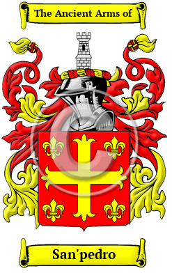 | San'pedro History, Family Crest & Coats of Arms Etymology of San'pedroWhat does the name San'pedro mean? The notable surname San'pedro is a proud sign of a rich and ancient Spanish ancestry. The earliest forms of hereditary surnames in Spain were the patronymic surnames, which are derived from the father's given name, and metronymic surnames, which are derived from the mother's given name. Spanish patronymic names emerged as early as the mid-9th century and the most common patronymic suffix is "ez." The patronyms were derived from a variety of given names that were of many different origins. In Europe, the Christian Church was one of the most powerful influences on the formation of given names. Personal names derived from the names of saints, apostles, biblical figures, and missionaries are widespread in most European countries. In the Middle Ages, they became increasingly popular because people believed that the souls of the deceased continued to be involved in this world. They named their children after saints in the hope that the child would be blessed or protected by the saint. Early Origins of the San'pedro familyThe surname San'pedro was first found in Castile, where the name originated in Visigothic times. Early History of the San'pedro familyThis web page shows only a small excerpt of our San'pedro research. Another 137 words (10 lines of text) covering the years 1155, 1168, 1227, 1236, 1309, 1570, 1606, 1628, 1634, 1642, 1670, 1693 and 1713 are included under the topic Early San'pedro History in all our PDF Extended History products and printed products wherever possible. San'pedro Spelling VariationsSpelling variations of this family name include: Pérez, Perez, Pédriz, Pedriz, Périz, Periz, Pétrez, Petrez, Pétriz, Petriz, Pédrez, Pedrez and many more. Early Notables of the San'pedro familywas the legendary Castilian heroine María Pérez who, disguised as a man, fought against and defeated the Aragonese King Alfonso I and later married a Castilian prince; Pelayo Pérez de Fromesta, a knight of Castile in 1155; Count Alvar Pérez de Lara, tutor to the young King Alfonso VIII in 1168; Gutierre Pérez de Reynoso, ambassador of Alfonso VIII to the King of England; Ferran Peres Pardo, a knight of the order of Santiago; Alvar Pérez, who in 1227 was betrothed to a daughter of the King of Navarre; Rodrigo Pérez de Tapiola received a grant of land near Cordoba after... Another 145 words (10 lines of text) are included under the topic Early San'pedro Notables in all our PDF Extended History products and printed products wherever possible. Migration of the San'pedro familySome of the first settlers of this family name or some of its variants were: Juan Pérez de Sorita of Cordoba, who voyaged to Peru in 1550 and to Argentina in 1557. Other members of the family who were early emigrants to Spain'.