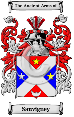 The surname Sauvigney was first found in Lorraine, where the family has been a prominent family for centuries, and held a family seat with lands and manor. The family were well established in the region of Nancy and several members of the family distinguished themselves through their contributions toward the community in which they lived and were rewarded with lands, titles and letters patent confirming their nobility.