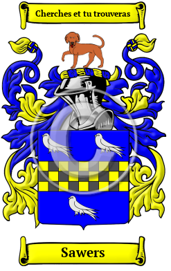 | Sawers History, Family Crest & Coats of Arms Etymology of SawersWhat does the name Sawers mean? Sawers is an Anglo-Saxon name. The name was originally given to a person who worked as the sawyer. 1 2 This individual bought wood and cut it with his saw in order to sell it the towns people. Occupational names frequently were derived from the principal object associated with the activity of the original bearer, such as tools or products. These types of occupational surnames are called metonymic surnames. One source claims the name could have been Norman in origin as in "Radulphus de Sahurs, and the Ville of Sahurs, Normandy 1198." 3 While this entry is quite a bit later than the Norman Conquest, the presumption is that not all of the family accompanied the Conqueror in 1066. Early Origins of the Sawers familyThe surname Sawers was first found in various counties and shires throughout ancient Britain. The earliest record of the family was found in Berkshire where Nicholas le Sagyere was listed c. 1248. A few years later, Humfrey le Sayhare, le Sawyere, and Robert le Sawyere, le Saweare were both listed in the Assize Rolls of Somerset in 1270. 4 The Hundredorum Rolls of 1273 also listed some of the first entries for the family: Ralph le Sawiere in Huntingdonshire; and Geoffrey le Sawere in London. 2 Further to the north, Philip le Sagher was listed in the Yorkshire in 1324. 4 By the 15th century, the name was frequented much further north in Scotland where Alexander Sawer was burgess of Glasgow in 1447 and Andrew Sauer was juror on inquest at Prestwick in 1470. "Thomas Sawar was friar preacher in St. Andrews, 1545." 5 Early History of the Sawers familyThis web page shows only a small excerpt of our Sawers research. Another 81 words (6 lines of text) covering the years 1633, 1681, 1687, 1692, 1783, 1812, 1833, 1876, 1884, 1894 and 1896 are included under the topic Early Sawers History in all our PDF Extended History products and printed products wherever possible. Sawers Spelling VariationsOne relatively recent invention that did much to standardize English spelling was the printing press. However, before its invention even the most literate people recorded their names according to sound rather than spelling. The spelling variations under which the name Sawers has appeared include Sawyer, Sawier, Sawer and others. Early Notables of the Sawers familySir Robert Sawyer, of Highclere (1633-1692), Attorney General for England and Wales (1681-1687) and Speaker of the English House of Commons; and Admiral Sir Herbert Sawyer, KCB (fl. 1783-1833), British officer of... Another 31 words (2 lines of text) are included under the topic Early Sawers Notables in all our PDF Extended History products and printed products wherever possible.