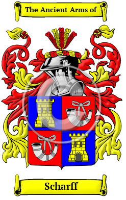 Germany Etymology of ScharffWhat does the name Scharff mean? The ancestral home of the Scharff family is in the German province of Bavaria. Scharff is a German nickname surname. Such names came from eke-names, or added names, that described their initial bearer through reference to a physical characteristic or other attribute. It is a name for a sharp or quick witted person. The name stems from the German word "scharf," meaning "sharp." Early Origins of the Scharff familyThe surname Scharff was first found in Bavaria, where the name was anciently associated with the tribal conflicts of the area. They declared allegiances to many nobles and princes of early history, lending their influence in struggles for power and status within the region. Chronicles first mention Sigehard Scharf of Bavaria in 1060, and Hainrich Scharpf of Wuerttemberg in 1330. Later the various families branched into many houses, and their contributions were sought by many leaders in their search for power. Early History of the Scharff familyThis web page shows only a small excerpt of our Scharff research. Another 141 words (10 lines of text) covering the years 1537, 1769, 1792, 1813 and 1851 are included under the topic Early Scharff History in all our PDF Extended History products and printed products wherever possible. Scharff Spelling VariationsMany cultural groups lived in the German states in medieval times. Each had its own dialect and traditions, and unique variations of popular names. Low German, which is similar to contemporary Dutch, was spoken in Westphalia. German names are characterized by additions such as regional suffixes and phrases that tell something about the origin or background of its original bearer. Further contributing to the variation in German names was the fact that there were no spelling rules in medieval times: scribes recorded names according to their sound. The recorded spelling variations of Scharff include Scharff, Scharfe, Scharfer, Scharf and others. Early Notables of the Scharff family- the knight Johann Nepomuk Edler von Scharff, who was Lord of Oslawan, Hoednitz and Muehlfrauen in Maehren...
