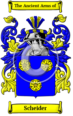 Germany Early Origins of the Scheider familyThe surname Scheider was first found in the Rhineland, where this family was a prominent contributor to the development of the district from ancient times. Always influential in social affairs, the name Scheidt became an integral part of that turbulent region as it forged alliances with other families within the region and the nation. Early History of the Scheider familyThis web page shows only a small excerpt of our Scheider research. Another 80 words (6 lines of text) covering the years 1490, 1493, 1587, 1593, 1653, 1661 and 1790 are included under the topic Early Scheider History in all our PDF Extended History products and printed products wherever possible. Scheider Spelling VariationsSpelling variations of this family name include: Scheidt, Scheidtt, Scheidtz, Schheidt, Scheiddt, Scheidte, Scheidtes, Scheidtte, Scheiddte, Schidt and many more. Early Notables of the Scheider familyAnother 32 words (2 lines of text) are included under the topic Early Scheider Notables in all our PDF Extended History products and printed products wherever possible.