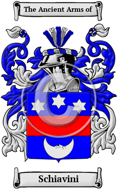 The source of theSchiavini surname is uncertain, but it may be derived from the Italian word "schiavone," which simply means a "Slav;" thus the original bearer came from one of the Slavic countries to Italy. Alternately, the Schiavini surname may come from the Italian word "schiavo," which literally means "slave."