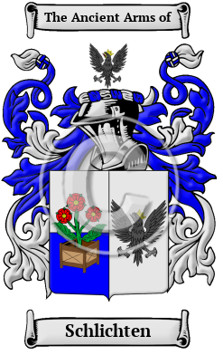 The surname Schlichten was first found in Austria, where the name Schlichten became noted for its many branches in the region, each house acquiring a status and influence which was envied by the princes of the region. In their later history, bearers of the name became a power unto themselves and were elevated to the ranks of nobility as they grew into this most influential family. The origin of this name is somewhat uncertain; it almost certainly comes from the Old High German word "sleht," but this word has two different meanings. The first is "direct or natural," so the name may have originated as a nickname for someone who was straightforward in his manner. The other meaning is "flat," and there are several areas around Germany named for the word, so the name may have been given to a man from any of these places.