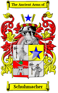 Germany Early Origins of the Schuhmacher familyThe surname Schuhmacher was first found in Bavaria, where the name was anciently associated with the tribal conflicts of the area. They declared allegiances to many nobles and princes of early history, lending their influence in struggles for power and status within the region. They branched into many houses, and their contributions were sought by many leaders in their search for power. Early History of the Schuhmacher familyThis web page shows only a small excerpt of our Schuhmacher research. Another 98 words (7 lines of text) covering the years 1619, 1667 and 1743 are included under the topic Early Schuhmacher History in all our PDF Extended History products and printed products wherever possible. Schuhmacher Spelling VariationsSpelling variations of this family name include: Schuh, Schuck, Shuh, Schuch, Shook, Schug, Schewe, Schugh, Schuhman, Schumann, Schuckman, Schuckmann, Schumaker, Schoemaker, Shoemaker, Schumacher, Schuhmacher, Shoo, Schoo and many more. Early Notables of the Schuhmacher familyCountess Ehrengard Melusina von der Schulenberg, Duchess of Kendal (1667-1743), born on 25 Dec. 1667 at Emden in the present Prussian province of Saxony. "Emden was the estate of her father, Count Gustavus Adolphus of the 'white' or elder line of the ancient Schulenburg... Another 44 words (3 lines of text) are included under the topic Early Schuhmacher Notables in all our PDF Extended History products and printed products wherever possible.