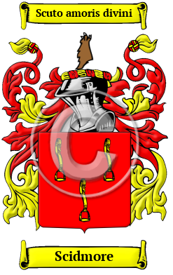 | Scidmore History, Family Crest & Coats of Arms Etymology of ScidmoreWhat does the name Scidmore mean? The name Scidmore reached English shores for the first time with the ancestors of the Scidmore family as they migrated following the Norman Conquest of 1066. The Scidmore family lived in the village of Fifield Scudamore or Upton Scudamore in Wiltshire. This place-name may have been derived from the Old English word scitemor which means one who lived at the moor. "The Surname of the Scudamores, as their historian tells us, 'was derived from their bearing Scutum Amoris Divitiis, which was antiently their arms, and in all Probability was given upon some gallant Action done by them in Defence of the Christian Faith.' Their Cross patée fitchée, Or [gold] was, however, in course of time exchanged for the arms of the great heiress through whom they were transplanted into Herefordshire. She bore three stirrups leathered and buckled Or." 1 While this passage clearly explains the significance of the family motto and thereby the origin of the name, the significance of the change of arms is not really explored. The change from a cross patée fitchée to three stirrups seemed unusual, so much so that "Sir John Scudamore, who held an office at Court, thought it well to recall the memory of the original bearing. " 1 Early Origins of the Scidmore familyThe surname Scidmore was first found in Wiltshire where the surname could have been derived from one of two villages: Fifield Scudamore; or Upton Scudamore. Fifield Scudamore, also known as Fifield Bavan is a very small village and former civil parish that dates back to 1264 when Peter de Scudamore was Lord of the Manor. It was later renamed in 1463 as Fiffehyde Beaufaunt when ownership had passed to the Beaufaunt family. The latter village Upton Skidamore, was often spelt Upton Skidmore and by John Sexton's map of Wiltshire in 1610, it was listed simply as Upton. "The family was first seated in Wiltshire, where Walter de Escudemore was Lord of Upton, near Warminster, in the time of Stephen. 'In 1165 Geoffrey de Scudimore' (perhaps his son) 'was a Baron in Wilts 2, and had sub-enfeofifed Waleran de Scudimore and Walter Gififord. He also held four fees of ancient enfeoffment from Robert D'Evias of Hereford." 3 As far as the family records are concerned, this ancient Norman family held a family seat at Upton Skidamore and at Norton near Warminster, Walter de Scudamore being lord of the former manor in the reign of Stephen. 4 "Peter de Schidimore was Sheriff of Dorset and Somerset in 1197 and 1199: and Sir Godfrey Scudamore Sheriff of Wilts in 1258. He married the heiress of Gifford of Brimsfield, and was the father of Sir Peter, 'a man of eminence' who kept great state at Upton, and founded a chantry in the church. His effigy, and that of his wife Margery, remain in the N. aisle, still called Scudamore's Aisle." 1 Early rolls show the wide variety of spelling in use in those times: Hugh de Scudimore was listed in the Pipe Rolls for Herefordshire in 1167; Peter de Skidemor c1170 was listed in Glastonbury, Somerset; Geoffrey Escudemor', Eskidemor' 1242 was found in the Feet of Fines Fees for Wiltshire; Peter de Skydemore 1282 in the Feet of Fines for Cheshire; and Richard Skidmore 1576, in the Subsidy Rolls for Wiltshire. 5 "The Skidmores were established in Eyam in the 17th and 18th centuries, where several of them were killed by the plague in 1666, Wiltshire. De Skidemore and Skidemore were Wiltshire names in the 13th century." 6 Early History of the Scidmore familyThis web page shows only a small excerpt of our Scidmore research. Another 120 words (9 lines of text) covering the years 1100, 1409, 1542, 1568, 1571, 1574, 1599, 1601, 1603, 1619, 1623, 1624, 1634, 1635, 1636, 1638, 1639, 1642, 1650, 1661, 1664, 1666, 1668, 1669, 1671, 1673, 1679, 1684, 1697, 1705, 1715 and 1716 are included under the topic Early Scidmore History in all our PDF Extended History products and printed products wherever possible. Scidmore Spelling VariationsAnglo-Norman names tend to be marked by an enormous number of spelling variations. This is largely due to the fact that Old and Middle English lacked any spelling rules when Norman French was introduced in the 11th century. The languages of the English courts at that time were French and Latin. These various languages mixed quite freely in the evolving social milieu. The final element of this mix is that medieval scribes spelled words according to their sounds rather than any definite rules, so a name was often spelled in as many different ways as the number of documents it appeared in. The name was spelled Scudamore, Scudmore and others. Early Notables of the Scidmore familySir John Skydemore of Kentchurch, High Sheriff of Herefordshire in 1409; Sir John Scudamore, (1542-1623), listed in the Custos Rotulorum of Herefordshire in 1574; Sir James Scudamore (also spelled Skidmore, Skidmur or Skidmuer) (1568-1619), a gentleman usher at the court of Queen Elizabeth I; John Scudamore, 1st Viscount Scudamore (1601-1671), English diplomat... Another 52 words (4 lines of text) are included under the topic Early Scidmore Notables in all our PDF Extended History products and printed products wherever possible. Migration of the Scidmore family to IrelandSome of the Scidmore family moved to Ireland, but this topic is not covered in this excerpt. More information about their life in Ireland is included in all our PDF Extended History products and printed products wherever possible.