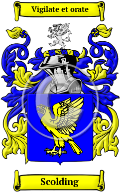 | Scolding History, Family Crest & Coats of Arms Etymology of ScoldingWhat does the name Scolding mean? Scolding is a name that first reached England following the Norman Conquest of 1066. The Scolding family lived in Norfolk, at Shouldham. The first record of the family was Simon de Shuldham who was found here in the Pipe Rolls of 1177. John of Shouldham was listed in the Assize Rolls for Norfolk in 1312. 1 The source History of Norfolk notes Thomas Shouldham, Norfolk, 1467; Thomas Shuldham, Norfolk, temp. 1580; and John Shouldnam, Lord of Marham and Shouldham. 2 Early Origins of the Scolding familyThe surname Scolding was first found in Norfolk where they held a family seat from the 12th century. Conjecturally they were descended from Ranulf, the Norman noble who held the lands of Shouldham from Reynald FitzIvo at the taking of the Domesday Book in the year 1086. At this time the lands held 1 Mill, 1.5 fisheries and a salt house. Recent excavations in the village suggest that it has been inhabited for 2000 years. 3 "Shouldham Hall, co. Suffolk, was the seat of this family so early as 34 Henry III., when Sir William de Shuldham was resident there. The Shuldhams of Ireland settled in that country, in co. Cork, early in the XVIII. century." 4 The Sholar variant probably originated in Lancashire where Adam del Scoler was listed in the Subsidy Rolls for 1332. 1 Later up in Scotland, Henry Scoular witnessed a sasine in 1525. George and Ralph Scouller in Huittoun, 1665. 5 Early History of the Scolding familyThis web page shows only a small excerpt of our Scolding research. Another 101 words (7 lines of text) covering the years 1250, 1556, 1616, 1651, 1679, 1681 and 1750 are included under the topic Early Scolding History in all our PDF Extended History products and printed products wherever possible. Scolding Spelling VariationsIt is only in the last few hundred years that the English language has been standardized. For that reason, Anglo-Norman surnames like Scolding are characterized by many spelling variations. Scribes and monks in the Middle Ages spelled names they sounded, so it is common to find several variations that refer to a single person. As the English language changed and incorporated elements of other European languages such as Norman French and Latin, even literate people regularly changed the spelling of their names. The variations of the name Scolding include Shuldham, Shouldham, Shuldam, Shouldam, Sholtham and many more. Early Notables of the Scolding familyMore information is included under the topic Early Scolding Notables in all our PDF Extended History products and printed products wherever possible. Migration of the Scolding family to IrelandSome of the Scolding family moved to Ireland, but this topic is not covered in this excerpt. Another 63 words (4 lines of text) about their life in Ireland is included in all our PDF Extended History products and printed products wherever possible. Migration of the Scolding familyFaced with the chaos present in England at that time, many English families looked towards the open frontiers of the New World with its opportunities to escape oppression and starvation. People migrated to North America, as well as Australia and Ireland in droves, paying exorbitant rates for passages in cramped, unsafe ships. Many of the settlers did not make the long passage alive, but those who did see the shores of North America were welcomed with great opportunity. Many of the families that came from England went on to make essential contributions to the emerging nations of Canada and the United States. Some of the first immigrants to cross the Atlantic and come to North America carried the name Scolding, or a variant listed above: George Shouldam arrived in Philadelphia in 1780.