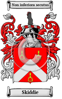 The surname Skiddie was first found in the island of Skye, where they were a Norse\Gael Clan whose Gaelic name was spelled Scideadh. This distinguished family were "gallowglasses" (mercenary soldiers) who were invited by the Earls of Desmond in southern Ireland to be a part of his formidable army.
