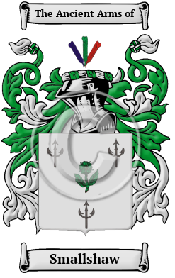 The surname Smallshaw was first found in Yorkshire, where the name appeared in the late 13th century. The name Smallshaw, like many surnames, was probably derived from a topograhpical feature of the family's dwelling place. The name was probably derived from "small" plus the Old English word "sceaga," meaning a group of trees. In this case, it is likely the family lived near either a small group of trees, or perhaps a group of small trees. Another, somewhat less likely possibility is that the second part of the name comes not from "sceaga," but from "sceo," meaning "shoe." In that case, the name would be most likely a nickname that got converted into a surname; perhaps the first bearer of the name had small feet, which inspired the name.