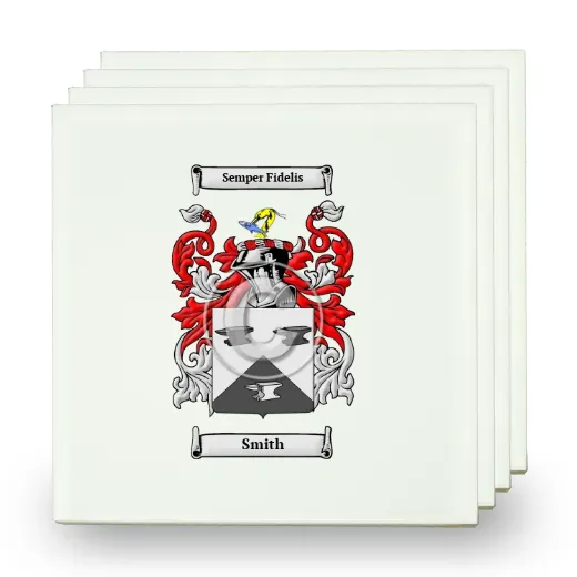 Set of Four Small Tiles with Coat of Arms