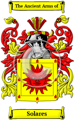 | Solares History, Family Crest & Coats of Arms Etymology of SolaresWhat does the name Solares mean? From the historical and enchanting region of Spain emerged a multitude of noble families, including the distinguished Solares family. The original bearer of the name Solares, which is a local surname, once lived, held land, or was born in the beautiful region of Spain. In Spain, hereditary surnames were adopted according to fairly general rules and during the late Middle Ages, names that were derived from localities became increasingly widespread. Local names originally denoted the proprietorship of the village or estate. The Solares family originally lived in any of the numerous village and towns named Soler. This place-name is derived from the word "soler," which means "site" or "plot" and it is ultimately derived from the Late Latin word "solarium," which means "bottom" or "ground." Early Origins of the Solares familyThe surname Solares was first found in Catalonia, in northeastern Spain. Early History of the Solares familyThis web page shows only a small excerpt of our Solares research. Another 114 words (8 lines of text) covering the years 1074 and 1469 are included under the topic Early Solares History in all our PDF Extended History products and printed products wherever possible. Solares Spelling VariationsSpelling variations of this family name include: Solís, de Solís, Solis, de Solis, Soliz, Soler, Solé, de Solé, Sole, de Sole, Solano, Sol, de Sol, del Sol, Sols, Soles, Solares and many more. Early Notables of the Solares familywas Isabel de Solís, a fourteenth century noblewoman who was taken captive by the Muslims of Granada. She converted to Islam, took the name Zoraya, then married the King, Abulhassan. The Tower of La Cautiva ("The Captive"), which still stands inside the Alhambra palace in Granada, was named for Isabel de Solís. Also of note were seventeenth century Spanish historian and playwright Antonio de Solís y Ribadeneyra... Another 67 words (5 lines of text) are included under the topic Early Solares Notables in all our PDF Extended History products and printed products wherever possible. Solares Rankingthe United States, the name Solares is the 10,295th most popular surname with an estimated 2,487 people with that name. 1