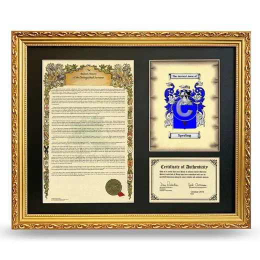 Framed Surname History and Coat of Arms- Gold