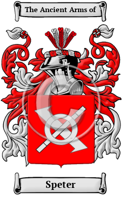 The surname Speter was first found in Bavaria, where the name Speters was anciently associated with the tribal conflicts of the area. They declared allegiances to many nobles and princes of early history, lending their influence in struggles for power and status within the region. They branched into many houses, and their contributions were sought by many leaders in their search for power.