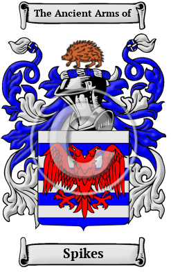 England Etymology of SpikesWhat does the name Spikes mean? Spikes is a name that first reached England following the Norman Conquest of 1066. It comes from the Norman given name Espec. Early Origins of the Spikes familyThe surname Spikes was first found in Lancashire where a Norman noble Le Espec was an under tenant of Roger de Poitou, and was granted the lands of Speke outside Liverpool in Lancashire. Soon after the taking of the Domesday Book in 1086, a descendant, Richard Le Espec acquired the manors of Wenworthy and Brampton Speke in the county of Devon, 1 which he held from Robert Fitzroy of Oakhampton. His descendent, William Le Espec married and acquired the estates of Gervois. Walter Espec (d. 1153), was founder of Rievaulx Abbey, Yorkshire, and was probably the son of William Spech, who in 1085 held Warden, Bedfordshire, where some fifty years later Walter Espec founded and endowed an Abbey. "Espec's chief property was in Yorkshire, and he resided at Helmsley. Under Henry I he was Justice of the Forests and Itinerant Justice in the northern counties. Under Stephen he actively resisted the Scotch invasion. On 10 Jan. 1138 FitzDuncan failed in a night attack on Espec's castle of Wark. Then King David and his son Henry came up and formed a regular siege for three weeks, after which the main body passed on to Harry Northumberland. Three months later (c. 8 May) the garrison swooped down upon the Scotch king's commissariat, and had to submit to a second siege. The castle was stoutly defended by Walter's nephew, John de Bussey, but had to surrender about 11 Nov. " 2 Early History of the Spikes familyThis web page shows only a small excerpt of our Spikes research. Another 107 words (8 lines of text) covering the years 1592, 1653, 1661, 1675, 1681 and 1683 are included under the topic Early Spikes History in all our PDF Extended History products and printed products wherever possible. Spikes Spelling VariationsBefore the advent of the printing press and the first dictionaries, the English language was not standardized. Sound was what guided spelling in the Middle Ages, so one person's name was often recorded under several variations during a single lifetime. Spelling variations were common, even among the names of the most literate people. Known variations of the Spikes family name include Speak, Speck, Speake, Speke and others. Early Notables of the Spikes familySir John Speke of Whitelackington; and Sir Hugh Speke, 1st Baronet of Hasilbury, Wiltshire (died 1661), an English politician who sat in the House of Commons in 1661; and... Another 28 words (2 lines of text) are included under the topic Early Spikes Notables in all our PDF Extended History products and printed products wherever possible. Spikes Rankingthe United States, the name Spikes is the 5,763rd most popular surname with an estimated 4,974 people with that name. 3