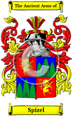 The surname Spizel was first found in Styria, where the name was anciently associated with the tribal conflicts of the area. They declared allegiances to many nobles and princes of early history, lending their influence in struggles for political supremacy within the region. They branched into many houses, some located in Bavaria, and their allegiance was sought by many leaders in their search for power. Early records of the name show Jordan ab der Spitze in Amberg in 1364; as well as Liendel im Spitz in Upper Austria in 1492.