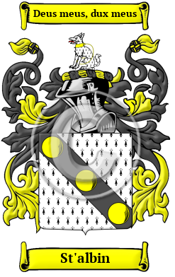 | St'albin History, Family Crest & Coats of Arms Etymology of St'albinWhat does the name St'albin mean? St'albin is an ancient Norman name that arrived in England after the Norman Conquest of 1066. The St'albin family lived in Devon. Their name, however, is a reference to St. Albine de Terregatt, Normandy. "Mauger de St. Albyn witnessed the foundation charter of Barnstaple Abbey in the time of the Conqueror, and his posterity remained for many generations in Devonshire. Their earliest recorded residence was Pickwell, in the parish of George Ham, where Sir Mauger de St. Albino was seated in the latter days of Henry III." 1 "This knight and his lady are interred in the church, under a fair monument of free stone, with their representations neatly cut ; and he lying in his armour makes show of large stature, something more than ordinary. The inhabitants report from their ancestors that he was of giant-like stature, and therefore named Major St. Aubyn, mistaking Major for Mauger or Maugis, a common name in those days. He was of so great and extraordinary strength that he was able to cast a huge main stone a very large length. The stone is yet there to be seen, and the throw marked out by two erected monuments yet extant, and the stone is so weighty that two strong men of this age are but able to lift it." 1 Early Origins of the St'albin familyThe surname St'albin was first found in Devon and neighbouring Cornwall. "The manors of Berripper and Penpons, [in Camborne] which are now the property of Sir John St. Aubyn, have long been in the possession of his family. His grandfather, who was born in this parish, and who represented this county in parliament, has rendered his name memorable by his eloquence and independence." 2 "The manor of Trelowith, together with that of Trenhale, [in the parish of St. Erth, Cornwall] has long been in the St. Aubyn family, where it still remains. Hals says, that from Trenhayle was denominated an old family of gentlemen that became extinct so early as the reign of Edward III. when the heiress of this family married Tencreek, whose heiress married Budeoxhed, which family also became extinct in the reign of Elizabeth. It appears however, from the parish register, that some of the Trenhayle family remained so late as the seventeenth century." 2 Early History of the St'albin familyThis web page shows only a small excerpt of our St'albin research. Another 121 words (9 lines of text) covering the years 1613, 1640, 1641, 1645, 1670, 1684, 1687, 1702, 1714, 1726, 1744, 1772 and 1819 are included under the topic Early St'albin History in all our PDF Extended History products and printed products wherever possible. St'albin Spelling VariationsMultitudes of spelling variations are a hallmark of Anglo Norman names. Most of these names evolved in the 11th and 12th century, in the time after the Normans introduced their own Norman French language into a country where Old and Middle English had no spelling rules and the languages of the court were French and Latin. To make matters worse, medieval scribes spelled words according to sound, so names frequently appeared differently in the various documents in which they were recorded. The name was spelled St. Albyn, St. Awbyne, St. Aubyn, St. Alban and many more. Early Notables of the St'albin familySir John St. Albyn; John St Aubyn (1613-1684), English politician in the House of Commons (1640), Colonel in the Parliamentary Army in the English Civil War; Sir John St Aubyn, 1st Baronet (1645-1687), of... Another 33 words (2 lines of text) are included under the topic Early St'albin Notables in all our PDF Extended History products and printed products wherever possible. Migration of the St'albin family to IrelandSome of the St'albin family moved to Ireland, but this topic is not covered in this excerpt. Another 48 words (3 lines of text) about their life in Ireland is included in all our PDF Extended History products and printed products wherever possible. Migration of the St'albin familyBecause of this political and religious unrest within English society, many people decided to immigrate to the colonies. Families left for Ireland, North America, and Australia in enormous numbers, traveling at high cost in extremely inhospitable conditions. The New World in particular was a desirable destination, but the long voyage caused many to arrive sick and starving. Those who made it, though, were welcomed by opportunities far greater than they had known at home in England. Many of these families went on to make important contributions to the emerging nations of Canada and the United States. Analysis of immigration records indicates that some of the first North American immigrants bore the name St'albin or a variant listed above: Jonathan St. Alban, who settled in Barbados in 1663; James, David, Edward, John, Michael, Patrick, Thomas, Walter and William Tobin all arrived in Philadelphia between 1840 and 1870..
