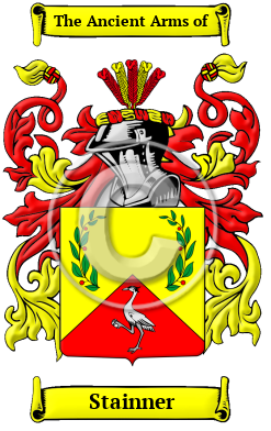 The surname Stainner was first found in Somerset where they held a family seat as Lords of the Manor. The Saxon influence of English history diminished after the Battle of Hastings in 1066. The language of the courts was French for the next three centuries and the Norman ambience prevailed. But Saxon surnames survived and the family name was first referenced in the 13th century when they held estates in that shire.