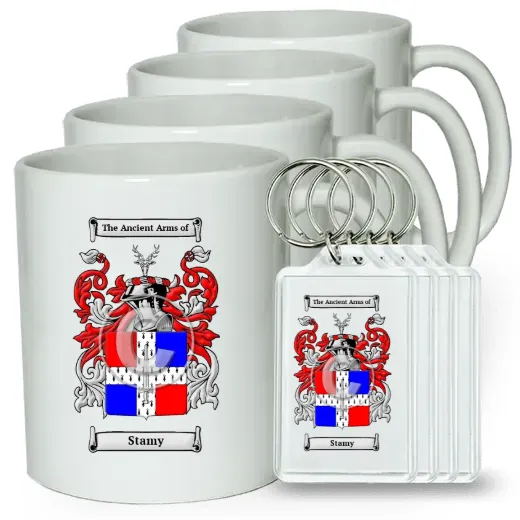 Set of 4 Coffee Mugs and Keychains