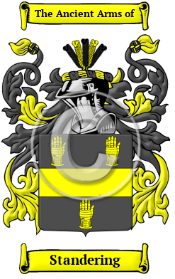 The surname Standering was first found in Lancashire where they held a family seat as Lords of the Manor. The Saxon influence of English history diminished after the Battle of Hastings in 1066. The language of the courts was French for the next three centuries and the Norman ambience prevailed. But Saxon surnames survived and the family name was first referenced in the 13th century when they held estates in that shire.