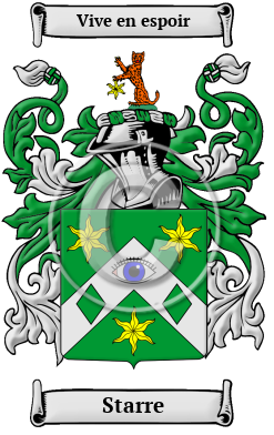 | Starre History, Family Crest & Coats of Arms Etymology of StarreWhat does the name Starre mean? The name Starre is an ancient Anglo-Saxon name that was given to a person who was a person whose personality or appearance called to mind a star. Starre is a nickname, which belongs to the category of hereditary surnames. Nicknames form a broad and miscellaneous class of surnames, and can refer directly or indirectly to one's personality, physical attributes, mannerisms, or even their habits of dress. The surname Starre comes from the Old English words sterre, or starre, which mean star, and would have been given to someone with a bright personality. This word was also used to refer to a white patch of hair on the forehead of a horse, an so, it may have been transferred to refer to someone with a streak of white hair. Early Origins of the Starre familyThe surname Starre was first found in Wiltshire where they held a family seat from ancient times in the village of Longbridge Deverill at Glastonbury. It is said that King Alfred, King of the west Saxons, camped the night in the Deverill valley before defeating the Danes at the Battle of Ethandune in 878. By the time of the Domesday Book in 1086, Leuenot Sterre held lands in Derbyshire. 1 Later in Norfolk, we found Simon Sterre in the Pipe Rolls of 1130 and later again, William Sturre, Sterre was listed in the Assize Rolls for Gloucestershire in 1221. 2 Early History of the Starre familyThis web page shows only a small excerpt of our Starre research. Another 53 words (4 lines of text) covering the years 1086, 1629, 1633, 1637 and 1672 are included under the topic Early Starre History in all our PDF Extended History products and printed products wherever possible. Starre Spelling VariationsOnly recently has spelling become standardized in the English language. As the English language evolved in the Middle Ages, the spelling of names changed also. The name Starre has undergone many spelling variations, including Starr, Star, Starre, Ster, Sterr, Starmer and others. Early Notables of the Starre familyAnother 33 words (2 lines of text) are included under the topic Early Starre Notables in all our PDF Extended History products and printed products wherever possible. Migration of the Starre family to IrelandSome of the Starre family moved to Ireland, but this topic is not covered in this excerpt. More information about their life in Ireland is included in all our PDF Extended History products and printed products wherever possible.