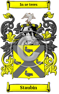 | Staubin History, Family Crest & Coats of Arms Etymology of StaubinWhat does the name Staubin mean? The name Staubin has a long French heritage that first began in the northern region of Normandy. The name is derived from when the family lived at the seigneury of Saint-Aubin-sur-Mer, in Normandy. Early Origins of the Staubin familyThe surname Staubin was first found in Normandy (French: Normandie), the former Duchy of Normandy, where they held a family seat. Early History of the Staubin familyThis web page shows only a small excerpt of our Staubin research. Another 258 words (18 lines of text) covering the years 1050, 1066, 1350, 1423, 1671, 1724, 1736, 1780, 1807 and 1839 are included under the topic Early Staubin History in all our PDF Extended History products and printed products wherever possible. Staubin Spelling VariationsThe many different spellings of French surnames can be partially explained by the use of local dialects and by the influence of other languages during the early development of the French language. As a result of these linguistic and cultural influences, the name Staubin is distinguished by a number of regional variations. The many spelling variations of the name include Saint-Aubin, Saint-Auban, Saint-Albin, Saint-Albino, Saint-Aubyn, St. Aubin, De St. Aubin and many more. Early Notables of the Staubin familyMore information is included under the topic Early Staubin Notables in all our PDF Extended History products and printed products wherever possible.