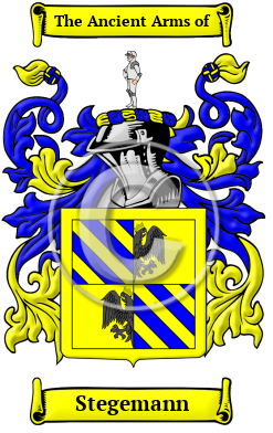 Germany Etymology of StegemannWhat does the name Stegemann mean? The roots of the distinguished German surname Stegemann lie in the former duchy of Swabia, where the name is believed to have first emerged. The name is derived from the Old High German word "steg," meaning "footpath" or "footbridge." It is likely that the name was originally borne by someone living near a narrow pathway or a small bridge. Early Origins of the Stegemann familyThe surname Stegemann was first found in the duchy of Swabia, where it is believed to have first emerged. The earliest known bearer of the name was Walther Stagemann, who was living in the village of Gollsdorf in 1280. The young Stegemann family played an important role during this period, and contributed greatly to the development of medieval Swabian society. Early History of the Stegemann familyThis web page shows only a small excerpt of our Stegemann research. Another 126 words (9 lines of text) covering the years 1280, 1287, 1444, 1780, 1788, 1813 and 1891 are included under the topic Early Stegemann History in all our PDF Extended History products and printed products wherever possible. Stegemann Spelling VariationsSpelling variations of this family name include: Stegmann, Steggmann, Stegman, Steggman, Stegeman, Stegemann, Stegelmann, Stegmaier, Stegmüller, Stegmueller, Steggeman and many more. Early Notables of the Stegemann familyAnother 37 words (3 lines of text) are included under the topic Early Stegemann Notables in all our PDF Extended History products and printed products wherever possible.