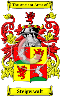 Germany Etymology of SteigerwaltWhat does the name Steigerwalt mean? The surname Steigerwalt is of toponymic origin derived from the Steigerwald mountain range in what was once called Franconia. Toponymic names usually indicated someone who had come from another region to settle, in this case the bearer probably would have hailed from the Steigerwald Mountains. The name of these mountains is derived from the Old and Middle High German "stic" meaning "climbing (path)" or the Old High German "stigan" meaning "to climb" and "wald" meaning "forest." Thus, Steigerwald can be translated literally as "climbing forest." Early Origins of the Steigerwalt familyThe surname Steigerwalt was first found in Franconia, where the name was closely identified in early mediaeval times with the feudal society which would shape European history. The name would emerge as a noble family with great influence, having many distinguished branches, and become noted for its involvement in social, economic and political affairs. The earliest record of this surname dates back to the 14th century, when Gotfried Staygerwalt was recorded as residing in Nuremberg in 1315. Early History of the Steigerwalt familyThis web page shows only a small excerpt of our Steigerwalt research. Another 25 words (2 lines of text) covering the years 1702 and 1778 are included under the topic Early Steigerwalt History in all our PDF Extended History products and printed products wherever possible. Steigerwalt Spelling VariationsSpelling variations of this family name include: Steigerwalt, Steigerwald, Steigewalt and others. Early Notables of the Steigerwalt familyAnother 38 words (3 lines of text) are included under the topic Early Steigerwalt Notables in all our PDF Extended History products and printed products wherever possible.