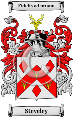 | Steveley History, Family Crest & Coats of Arms Etymology of SteveleyWhat does the name Steveley mean? The ancestors of the name Steveley date back to the Anglo-Saxon tribes of Britain. The name is derived from when the Steveley family lived in one of the various places called Staveley in the counties of Derbyshire, Lancashire, and Westmorland, and in the West Riding of Yorkshire. The surname Steveley belongs to the large category of Anglo-Saxon habitation names, which are derived from pre-existing names for towns, villages, parishes, or farmsteads. Early Origins of the Steveley familyThe surname Steveley was first found in Derbyshire at Staveley, a town within the borough of Chesterfield which literally means "wood or clearing where staves are got" from the Old English "staef" + "leah." 1 The town was listed in the Domesday Book of 1086 as Stavelie. 2 Staveley is also a village and civil parish in the Harrogate district of North Yorkshire and this village also dates back to the Domesday Book where it is listed as Stanlei. These are the oldest references to the place name but there are others scattered throughout England. Some of the family held a family seat at Stalybridge in Cheshire. "The name of Staly, originally Staveleigh, is derived from an ancient family who, in the reign of Edward III., occupied Stayley Hall, a portion of which mansion still remains; the addition arises from a bridge over the Tame, that connects the two counties, and which has been rebuilt." 3 Early History of the Steveley familyThis web page shows only a small excerpt of our Steveley research. Another 118 words (8 lines of text) covering the years 1498, 1613, 1626 and 1678 are included under the topic Early Steveley History in all our PDF Extended History products and printed products wherever possible. Steveley Spelling VariationsIt is only in the last few hundred years that the English language has been standardized. For that reason, early Anglo-Saxon surnames like Steveley are characterized by many spelling variations. As the English language changed and incorporated elements of other European languages, even literate people changed the spelling of their names. The variations of the name Steveley include: Staveley, Stavely, Staley, Stayley, Staveleigh and many more. Early Notables of the Steveley familyThomas Staveley, High Sheriff of Leicestershire in 1613; and Thomas Staveley (born 1626), antiquary and church historian of East Langton Leicestershire.