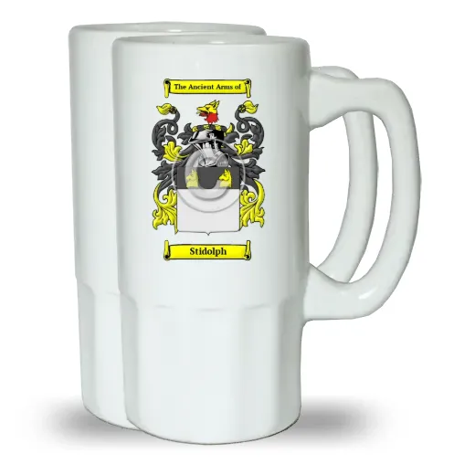 A Set of Two Ceramic Beer Steins, (Same Coat of arms on both Steins)