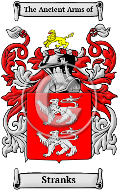 | Stranks History, Family Crest & Coats of Arms Etymology of StranksWhat does the name Stranks mean? The first bearer of the name Stranks most likely took on this name based on an early member of the family who was a "stranger." Nicknames come from the category of surnames known as hereditary surnames. They were adopted from a variety of sources including, physical characteristics, behaviour, mannerisms, and other personal attributes. Stranks would have been given to someone who was new in the village or parish. In the Middle Ages, the vast majority of people never traveled any more than thirty miles or so from the place of their birth. Travel and emigration was reserved for the nobility, by and large. The surname Stranks was derived from the Old French word estrange, which meant foreign. This is a name associated with the Bretons, a culture from the peninsula of Brittany, in the northwest of France. Formerly known as Armorica, a possession of the Roman Empire, this land consists of a plateau with a deeply indented coast and is broken by hills in the west. However, the region was renamed Britannia Minor by the Romans, following the emigration of six thousand Britons across the English Channel, an event which took place at the behest of the Roman Commander in Britain. Early Origins of the Stranks familyThe surname Stranks was first found in Derbyshire where they held a family seat as Lords of the manor of Pevell's Castle in the peak of Derbyshire. Guido le Strange, son of the Duke of Brittany was present at a joust with Owen, Prince of Wales and the Scottish Prince. Guido le Strange was ancestor of the various baronial houses of L'Strange and Strange. "The church [in Wellesbourn-Hastings in Warwickshire] is partly Norman, and partly in the early English style, with a tower of later character, and contains a monument to the memory of Sir Thomas le Strange, lord-lieutenant of Ireland in the reign of Henry VI." 1 Roger Le Strange (died 1311), was an early English jurist, "a descendant of Guy Le Strange, who is thought to have been a younger son of Hoel II, Duke of Brittany (1066-1084). He was sheriff of Yorkshire during the last two years of the reign of Henry III, and the first two of that of Edward I. " 2 Early History of the Stranks familyThis web page shows only a small excerpt of our Stranks research. Another 152 words (11 lines of text) covering the years 1160, 1255, 1267, 1296, 1305, 1320, 1324, 1332, 1349, 1353, 1361, 1375, 1547, 1584, 1588, 1611, 1631, 1646, 1654, 1682, 1696, 1754 and 1890 are included under the topic Early Stranks History in all our PDF Extended History products and printed products wherever possible. Stranks Spelling VariationsThere are many spelling variations of Breton surnames, because the Old and Middle English languages lacked definite spelling rules. The official court languages, which were Latin and French, were also influential on the spelling of a surname. Since the spelling of surnames was rarely consistent in medieval times, and scribes and church officials recorded names as they sounded rather than adhering to any specific spelling rules, it was common to find references to one individual with many different spellings of their surname in the ancient chronicles. Moreover, a large number of foreign names were brought into England, which accelerated and accentuated the alterations to the spelling of various surnames. The name has been spelled Strange, Strang and others. Early Notables of the Stranks familyFulk le Strange, 1st Baron Strange of Blackmere (1267-1324); John le Strange, 2nd Baron Strange of Blackmere (1305-1349); Fulk le Strange, 3rd Baron Strange of Blackmere (1320-1349); John le Strange, 4th Baron Strange of Blackmere (1332-1361); and John le Strange, 5th Baron Strange of Blackmere (1353-1375.)