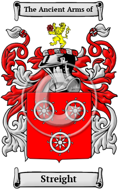 | Streight History, Family Crest & Coats of Arms Etymology of StreightWhat does the name Streight mean? The ancestry of the name Streight dates from the ancient Anglo-Saxon culture of Britain. It comes from when the family lived in any of a number of places called Street, in Herefordshire, Kent and Somerset. 1 Streight is a local surname, which belongs to the category of hereditary surnames. Other types of local surnames include topographic surnames, which could be given to a person who lived beside any physical feature, such as a hill, stream, church or type of tree. Habitation names form the other broad category of surnames that were derived from place-names. They were derived from pre-existing names for towns, villages, parishes, or farmsteads. Other local names are derived from the names of houses, manors, estates, regions, and entire counties. The surname Streight comes from the Old English word stræt, which means Roman road. In the Middle Ages, this word came to denote the main street in a village, and so the surname may also refer to someone who lived on the main street. 2 3 Early Origins of the Streight familyThe surname Streight was first found in Devon where they held a family seat from ancient times, but by the Hundredorum Rolls of 1273, the name had scattered throughout ancient Britain as those rolls include: Alice de la Strete, Oxfordshire and Alexander de la Strete, Kent. 4 Kirby's Quest listed John atte Strete, Somerset, 1 Edward III (during the first year's reign of Edward III) 5 and the Yorkshire Poll Tax Rolls of 1379 listed Elyas del Strete and Alicia del Strete as holding lands there at that time. 4 Some of the family emigrated to Ireland where the name was typically spelt Estrete or Strete and typically were found in Louth and Meath. We note that John Estrete, or Strete (died after 1511) was an Irish judge, author, law lecturer and statesman who held the offices of King's Serjeant, Deputy Chief Baron of the Irish Exchequer, and Master of the Coinage of Ireland. Early History of the Streight familyThis web page shows only a small excerpt of our Streight research. Another 81 words (6 lines of text) covering the years 1600, 1621, 1624, 1625, 1650, 1653, 1666, 1670, 1679, 1680, 1689 and 1696 are included under the topic Early Streight History in all our PDF Extended History products and printed products wherever possible. Streight Spelling VariationsSpelling variations in names were a common occurrence before English spelling was standardized a few hundred years ago. In the Middle Ages, even the literate spelled their names differently as the English language incorporated elements of French, Latin, and other European languages. Many variations of the name Streight have been found, including Street, Streat, Strethe, Strete and others. Early Notables of the Streight familyThomas Street (Streete) (1621-1689), an early English astronomer, best known for his book "Astronomia Carolina, a new theorie of Coelestial Motions" which was used as a reference for many years having at least three editions, eponym of the Street lunar crater.