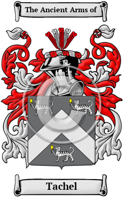 | Tachel History, Family Crest & Coats of Arms Etymology of TachelWhat does the name Tachel mean? Tachel is a name that was brought to England by the ancestors of the Tachel family when they migrated to the region after the Norman Conquest in 1066. The Tachel family lived in Lincolnshire, in the parish of Tattersall (Tattershall.) Early Origins of the Tachel familyThe surname Tachel was first found in Lincolnshire where William the Conqueror bestowed this and other lands upon one of his followers called Eudo, from whom descended Robert de Tateshall, who built Tattershall castle, and whose son was created Baron Tateshall in 1295. 1 2 Another source has a slightly different timeline: "This place was a Roman military post, as two encampments at Tattershall Park in its immediate neighbourhood indicate; and was granted at the Conquest to Eudo, one of William's followers, whose descendants erected a castle about 1440, south-westward from the town. The fortress stood on a moor, and was surrounded by two fosses, which received the waters of the Bain; the principal part was demolished during the parliamentary war. " 3 The Domesday Book of 1086 lists the place as Tateshale. 4 Early History of the Tachel familyThis web page shows only a small excerpt of our Tachel research. Another 71 words (5 lines of text) covering the years 1066, 1295, 1724 and 1795 are included under the topic Early Tachel History in all our PDF Extended History products and printed products wherever possible. Tachel Spelling VariationsNorman surnames are characterized by a multitude of spelling variations. The frequent changes in surnames are largely due to the fact that the Old and Middle English languages lacked definite spelling rules. The introduction of Norman French to England, as well as the official court languages of Latin and French, also had pronounced influences on the spelling of surnames. Since medieval scribes and church officials recorded names as they sounded, rather than adhering to any specific spelling rules, it was common to find the same individual referred to with different spellings. The name has been spelled Tattersall, Tattershall, Tateshall, Tatersall, Tatershall, Tatteshall, Tetstall and many more. Early Notables of the Tachel familyAnother 47 words (3 lines of text) are included under the topic Early Tachel Notables in all our PDF Extended History products and printed products wherever possible.