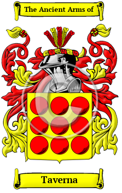The surname Taverna was first found in Benavente where they held a family seat from ancient times. In those ancient times only persons of rank, the podesta, clergy, city officials, army officers, artists, landowners were entered into the records. To be recorded at this time, at the beginning of recorded history, was of itself a great distinction and indicative of noble ancestry.