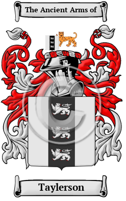 | Taylerson History, Family Crest & Coats of Arms Etymology of TaylersonWhat does the name Taylerson mean? During the Middle Ages, the surname of Taylerson was used in Scotland. While the patronymic and metronymic surnames, which are derived from the name of the father and mother respectively, are the most common form of a hereditary surname in Scotland, occupational surnames also emerged during the late Middle Ages. Many people, such as the Taylerson family, adopted the name of their occupation as their surname. However, an occupational name did not become a hereditary surname until the office or type of employment became hereditary. The surname Taylerson was an occupational name for a tailor. Interestingly, the name Taylerson was originally derived from the Anglo Norman French word taillour, meaning tailor. 1 Early Origins of the Taylerson familyThe surname Taylerson was first found in many places throughout Scotland. Some of the early records include: Alexander le Tayllur who was valet of Alexander in 1276; John le Taillur who was held the mill of Selkirk as firmar in 1292; and Brice le Taillur who was one of the Scottish prisoners taken at the capture of Dunbar Castle in 1296. The last entry's year is of great significance to the surname and indeed to much of Scotland; for it was that year that King Edward I invaded Scotland and insisted that the native Scots pay homage to him. Six persons of this name in the counties of Roxburgh, Dumfries, Edinburgh, Lanark, and Angus all rendered homage, 1296. 2 They held lands in Forfar, Cesseworth, Cunningham, Lanark, and Stirling in Scotland. Early History of the Taylerson familyThis web page shows only a small excerpt of our Taylerson research. Another 117 words (8 lines of text) covering the years 1292, 1376, 1645, 1729, 1779, 1784, 1850, 1890 and 1920 are included under the topic Early Taylerson History in all our PDF Extended History products and printed products wherever possible. Taylerson Spelling VariationsSpelling variations of this family name include: Taylor, Taylour, Taylur, Tailler, Taillefer and many more. Early Notables of the Taylerson familyEdward Taylor (1645-1729), who was hailed as the finest American poet of the 17th century upon the publication of his work in 1920, Sir Hubert Taylor, aid-de-camp to the King in... Another 30 words (2 lines of text) are included under the topic Early Taylerson Notables in all our PDF Extended History products and printed products wherever possible. Migration of the Taylerson family to IrelandSome of the Taylerson family moved to Ireland, but this topic is not covered in this excerpt. Another 60 words (4 lines of text) about their life in Ireland is included in all our PDF Extended History products and printed products wherever possible. Migration of the Taylerson familySome of the first settlers of this family name or some of its variants were: Achsah Taylor, who arrived in Salem, Massachusetts in 1630; James Taylor, who emigrated Dumfries to Virginia in the 1600's, Abraham Taylor, who settled in Virginia in 1664.