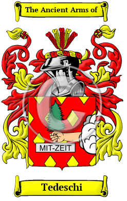 | Tedeschi History, Family Crest & Coats of Arms Etymology of TedeschiWhat does the name Tedeschi mean? The Tedeschi surname comes from the Italian word "tedesco," meaning "German," from the Old High German word "diutisc." As such, the name meant "one of Germany descent." It was also a Jewish name in Italy, given to or taken by Ashkenazic Jews in Italy. The name Tedeschi is the plural form of Tedesco. Early Origins of the Tedeschi familyThe surname Tedeschi was first found in Sicily (Italian: Sicilia), the largest island in the Mediterranean Sea where someone of the name of Cau is said to have come to Italy with the House of Hohenstaufen Dynasty from Swabia (in Germany,) and served under Emperor Henry VI (Arrigo VI of Svevia,) King of Sicily from 1194 to 1197. Early History of the Tedeschi familyThis web page shows only a small excerpt of our Tedeschi research. Another 59 words (4 lines of text) covering the years 1434, 1440, 1573, 1616, 1666 and 1674 are included under the topic Early Tedeschi History in all our PDF Extended History products and printed products wherever possible. Tedeschi Spelling VariationsSpelling variations of this family name include: Tedisco, Todeschi, Todesco, Tedeschi and others. Early Notables of the Tedeschi family- a Nicolo Tedesco, who was Archbishop of Palermo (1434-1440) and made a Cardinal in 1440. In 1573, a Giovani-Giacome Tedeschi was a member of the counsel of noblemen of Verona