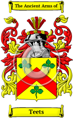 Netherlands Early Origins of the Teets familyThe surname Teets was first found in Holland, where the name became noted for its many branches in the region, each house acquiring a status and influence which was envied by the princes of the region. The name was first recorded in South Holland, a province of Holland, the most crowded province of the Netherlands. The principal cities are Rotterdam, Leyden and Shiedam. Noted is the famed castle of Teilengen where Jacqueline of Bavaria is buried. In their later history the surname became a power unto themselves and were elevated to the ranks of nobility as they grew into this most influential family. Early History of the Teets familyThis web page shows only a small excerpt of our Teets research. Another 95 words (7 lines of text) covering the years 1822 and 1856 are included under the topic Early Teets History in all our PDF Extended History products and printed products wherever possible. Teets Spelling VariationsSpelling variations of this family name include: Taetse, Taets, Taetses, Teatse, Teats, Taetss, Taetsse, Taettse, Taet, Taste and many more. Early Notables of the Teets familyMore information is included under the topic Early Teets Notables in all our PDF Extended History products and printed products wherever possible. Teets Rankingthe United States, the name Teets is the 9,495th most popular surname with an estimated 2,487 people with that name. 1