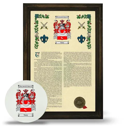The Armorial is framed with our custom solid 1" wood frame which compliments the earliest rendition of your Coat of Arms, Family Crest, and Surname History.
