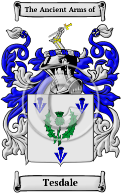 | Tesdale History, Family Crest & Coats of Arms Etymology of TesdaleWhat does the name Tesdale mean? The Anglo-Saxon name Tesdale comes from when the family resided in the area known as Teesdale found in the counties of Durham and the North Riding of Yorkshire. Tesdale is a topographic surname, which was given to a person who resided near a physical feature such as a hill, stream, church, or type of tree. During the Middle Ages, as society became more complex, individuals needed a way to be distinguishable from others. Toponymic surnames were developed as a result of this need. Various features in the landscape were used to distinguish people from one another. In this case the original bearers of the surname Tesdale were named due to their close proximity to the river Tees, which flowed between Yorkshire and Durham. Early Origins of the Tesdale familyThe surname Tesdale was first found in Durham where Walter de Tesedale was listed 1235-1236. A few years later, Mariota de Tesdale was found in the Subsidy Rolls for Cumberland (Cumbria) in 1332 and later again, Thomas Tesdall was listed in the Subsidy Rolls for Sussex in 1525. 1 The Hundredorum Rolls of 1273 included William tie Tesedal, Yorkshire. Henry de Tesdale was Prior of Finchale in 1295. The source History and Antiquities of the County Palatine of Durham included Hugh de Tesedale, 1350 and later the Yorkshire Poll Tax Rolls of 1379 included Johannes de Tesedale. 2 Early History of the Tesdale familyThis web page shows only a small excerpt of our Tesdale research. Another 82 words (6 lines of text) covering the years 1547, 1556, 1563, 1570, 1579, 1581, 1610, 1613, 1646, 1669, 1706, 1711 and 1735 are included under the topic Early Tesdale History in all our PDF Extended History products and printed products wherever possible. Tesdale Spelling VariationsBefore English spelling was standardized a few hundred years ago, spelling variations of names were a common occurrence. Elements of Latin, French and other languages became incorporated into English through the Middle Ages, and name spellings changed even among the literate. The variations of the surname Tesdale include Teasdale, Tisdale, Tisdell, Teesdale, Tisdall and others. Early Notables of the Tesdale family- Thomas Tesdale, Teasdale or Tisdale (1547-1610), was an English 'co-founder of Pembroke College, Oxford,' born at Stanford Dingley, Berkshire, son of Thomas Tesdale (d. 1556), by his second wife, Joan...