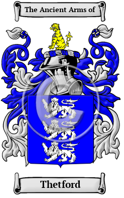 England Etymology of ThetfordWhat does the name Thetford mean? Thetford is one of the thousands of new names that the Norman Conquest brought to England in 1066. The Thetford family lived in Lincolnshire, at Tetforde. Early Origins of the Thetford familyThe surname Thetford was first found in Lincolnshire where they held a family seat as Lords of the manor of Tetforde from very ancient times, some say from the Norman Conquest of England in 1066 A.D. They were conjecturally descended from Gilbert of Tetford who held his lands from the Archbishop of York at the time of the Domesday Book Survey in 1086. At that time the village consisted of a church, a mill, and nine outlying mills. Early History of the Thetford familyThis web page shows only a small excerpt of our Thetford research. Another 37 words (3 lines of text) are included under the topic Early Thetford History in all our PDF Extended History products and printed products wherever possible. Thetford Spelling VariationsIt is only in the last few hundred years that the English language has been standardized. For that reason, Anglo-Norman surnames like Thetford are characterized by many spelling variations. Scribes and monks in the Middle Ages spelled names they sounded, so it is common to find several variations that refer to a single person. As the English language changed and incorporated elements of other European languages such as Norman French and Latin, even literate people regularly changed the spelling of their names. The variations of the name Thetford include Tetford, Thetford, Titford, Thetforde and others. Early Notables of the Thetford familyMore information is included under the topic Early Thetford Notables in all our PDF Extended History products and printed products wherever possible. Thetford Rankingthe United States, the name Thetford is the 14,737th most popular surname with an estimated 2,487 people with that name. 1