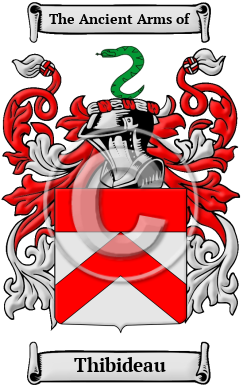 | Thibideau History, Family Crest & Coats of Arms Etymology of ThibideauWhat does the name Thibideau mean? The prestigious French surname Thibideau is a proud sign of a rich and dynamic ancestry. The earliest forms of hereditary surnames in France were the patronymic surnames, which are derived from the father's given name, and metronymic surnames, which are derived from the mother's given name. The patronyms were derived from a variety of given names that were of many different origins. As well as the names of the saints of the Christian Church, many of the most common French surnames are derived from personal names of Germanic origin. They derive from the language of the Visigoths, who controlled France between the mid-5th and early 8th centuries. The surname Thibideau was originally derived from the Old French personal name of Theobald, meaning bold or brave. 1 Early Origins of the Thibideau familyThe surname Thibideau was first found in Burgundy (French: Bourgogne), an administrative and historical region of east-central France where they held a family seat and functioned as officers of the mounted constabulary (Maréchaussés) of Bourgogne and Bresse. The name belonged to a chivalrous house dating back to the year 1400, located in the region of Berry. A gentleman from the King's chamber and three ladies established nobility on 26th September 1694, 11th June 1704, and 30th July 1706. Tibbos Hill was a settlement (now known as Wreck Cove) located in the Burin-Burgeo District, south west of Belleoram, Newfoundland. 2 Alternatively, the name could have originated from Thiboutot, in the Pays de Caux,Normandy. "John de Thiboutot is mentioned by Des Bois in 1107; and others appear in the Exchequer Rolls of 1180-1195. Three De Thiboutots are found in the Assembly of Norman nobles in 1789. In England the name, which after ages was often changed to Tiptoft, first occurs in the Liber Niger. Ralph de Toboltot or Toboutot held a fief in Suffolk from De Clare in 1165." 3 Pierre Thibaut, born in 1664, was a French soldier that travelled from Agen, Gascogne to Canada in the 17th century. On 24th November 1687 he married Catherine Baudry. Pierre died in Sault-au-Récollet, Quebec on 7th January 1740. Pierre Thibodeau, born in 1631, travelled from France to Canada in the 17th century. He married Jeanne Terriot in Port-Royal, Acadia in 1660 and together they had fourteen children, six sons and eight daughters. Their sons, Pierre, Jean, Antoine, Pierre, Michel, and Claude all married and carried on the family name of Thibodeau in Canada. Pierre was the founder of Chipody, Acadia, now known as Shepody, New Brunswick. He passed away while working at his mill, Pree-Ronde, on 26th December 1704.4 Hippolyte Thivierge, born in 1631, was a French merchant and tanner. He married Renée Herve in France and they eventually travelled together to Canada around the middle of the 17th century. They settled at Sainte-Famille-de-l'île-d'Orléans until Hippolyte's death on 11th December 1700. Renée passed away on 11th November 1702.4 François Thibeault, born in 1640, son of Louis and Renée (née Gauthier), travelled from France to Canada in the 17th century. After arriving in Quebec he married Elisabeth-Agnes Lefebvre, daughter of Guillaume and Barbe (née Viet), at Sainte-Anne-de-Beaupré on 14th October 1670. They remained together in Quebec until François died on 16th November 1721. Elisabeth-Agnes passed away on 8th July 1725. 4 Early History of the Thibideau familyThis web page shows only a small excerpt of our Thibideau research. Another 95 words (7 lines of text) covering the years 1844, 1921 and 1924 are included under the topic Early Thibideau History in all our PDF Extended History products and printed products wherever possible. Thibideau Spelling VariationsSpelling variations of this family name include: Thibaud, Thibault, Thibaut, Thiboult, Thiboud, Thibaudeau, Thibeault, Thiboutot, Thibodeau, Tibodo, Tibbo, Tibaut and many more. Early Notables of the Thibideau familyMore information is included under the topic Early Thibideau Notables in all our PDF Extended History products and printed products wherever possible. Migration of the Thibideau familySome of the first settlers of this family name or some of its variants were: Hippolyte Thivierge, who with his new wife Renée Hervé arrived in New France in 1659, a monument can be seen in Sainte-Famille, Quebec commemorating their arrival.