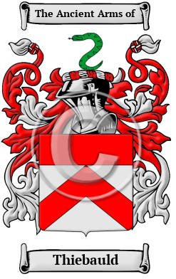 | Thiebauld History, Family Crest & Coats of Arms Etymology of ThiebauldWhat does the name Thiebauld mean? The prestigious French surname Thiebauld is a proud sign of a rich and dynamic ancestry. The earliest forms of hereditary surnames in France were the patronymic surnames, which are derived from the father's given name, and metronymic surnames, which are derived from the mother's given name. The patronyms were derived from a variety of given names that were of many different origins. As well as the names of the saints of the Christian Church, many of the most common French surnames are derived from personal names of Germanic origin. They derive from the language of the Visigoths, who controlled France between the mid-5th and early 8th centuries. The surname Thiebauld was originally derived from the Old French personal name of Theobald, meaning bold or brave. 1 Early Origins of the Thiebauld familyThe surname Thiebauld was first found in Burgundy (French: Bourgogne), an administrative and historical region of east-central France where they held a family seat and functioned as officers of the mounted constabulary (Maréchaussés) of Bourgogne and Bresse. The name belonged to a chivalrous house dating back to the year 1400, located in the region of Berry. A gentleman from the King's chamber and three ladies established nobility on 26th September 1694, 11th June 1704, and 30th July 1706. Tibbos Hill was a settlement (now known as Wreck Cove) located in the Burin-Burgeo District, south west of Belleoram, Newfoundland. 2 Alternatively, the name could have originated from Thiboutot, in the Pays de Caux,Normandy. "John de Thiboutot is mentioned by Des Bois in 1107; and others appear in the Exchequer Rolls of 1180-1195. Three De Thiboutots are found in the Assembly of Norman nobles in 1789. In England the name, which after ages was often changed to Tiptoft, first occurs in the Liber Niger. Ralph de Toboltot or Toboutot held a fief in Suffolk from De Clare in 1165." 3 Pierre Thibaut, born in 1664, was a French soldier that travelled from Agen, Gascogne to Canada in the 17th century. On 24th November 1687 he married Catherine Baudry. Pierre died in Sault-au-Récollet, Quebec on 7th January 1740. Pierre Thibodeau, born in 1631, travelled from France to Canada in the 17th century. He married Jeanne Terriot in Port-Royal, Acadia in 1660 and together they had fourteen children, six sons and eight daughters. Their sons, Pierre, Jean, Antoine, Pierre, Michel, and Claude all married and carried on the family name of Thibodeau in Canada. Pierre was the founder of Chipody, Acadia, now known as Shepody, New Brunswick. He passed away while working at his mill, Pree-Ronde, on 26th December 1704.4 Hippolyte Thivierge, born in 1631, was a French merchant and tanner. He married Renée Herve in France and they eventually travelled together to Canada around the middle of the 17th century. They settled at Sainte-Famille-de-l'île-d'Orléans until Hippolyte's death on 11th December 1700. Renée passed away on 11th November 1702.4 François Thibeault, born in 1640, son of Louis and Renée (née Gauthier), travelled from France to Canada in the 17th century. After arriving in Quebec he married Elisabeth-Agnes Lefebvre, daughter of Guillaume and Barbe (née Viet), at Sainte-Anne-de-Beaupré on 14th October 1670. They remained together in Quebec until François died on 16th November 1721. Elisabeth-Agnes passed away on 8th July 1725. 4 Early History of the Thiebauld familyThis web page shows only a small excerpt of our Thiebauld research. Another 95 words (7 lines of text) covering the years 1844, 1921 and 1924 are included under the topic Early Thiebauld History in all our PDF Extended History products and printed products wherever possible. Thiebauld Spelling VariationsSpelling variations of this family name include: Thibaud, Thibault, Thibaut, Thiboult, Thiboud, Thibaudeau, Thibeault, Thiboutot, Thibodeau, Tibodo, Tibbo, Tibaut and many more. Early Notables of the Thiebauld familyMore information is included under the topic Early Thiebauld Notables in all our PDF Extended History products and printed products wherever possible. Migration of the Thiebauld familySome of the first settlers of this family name or some of its variants were: Hippolyte Thivierge, who with his new wife Renée Hervé arrived in New France in 1659, a monument can be seen in Sainte-Famille, Quebec commemorating their arrival.